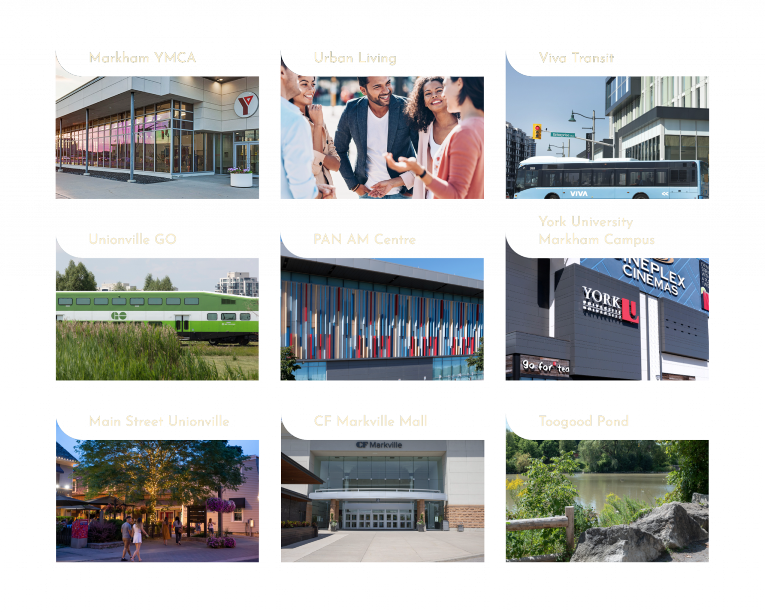The master plan for Union City defines Unlimited Living. The site will see new residences, recreation, offices, retail and parks spread across 12 acres, all conveniently located next to the Unionville GO station, Viva Enterprise Bus Rapid Transit, the Markham Pan Am Centre and the York University Markham Campus.